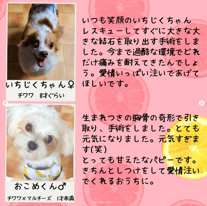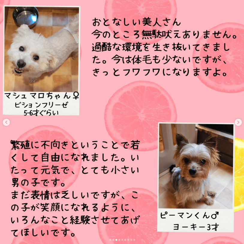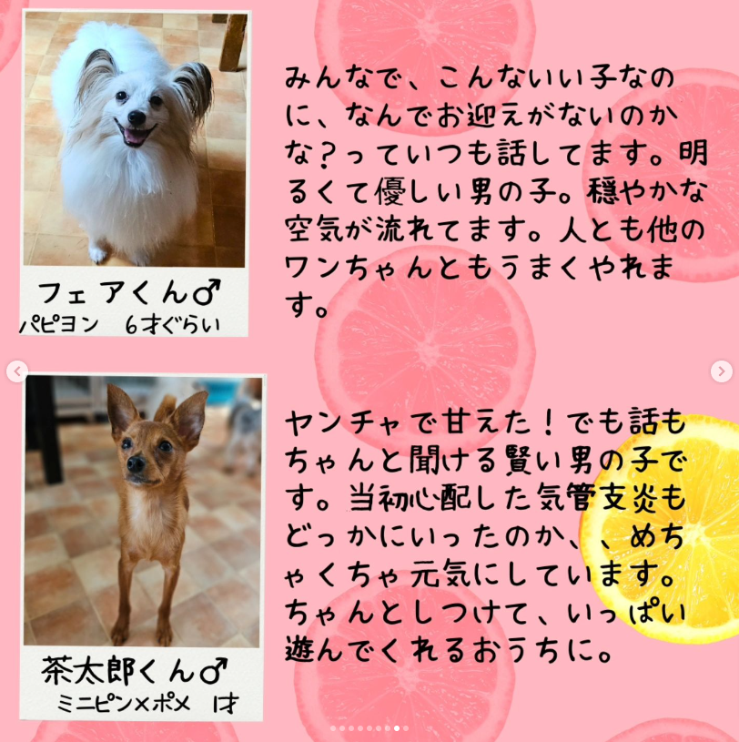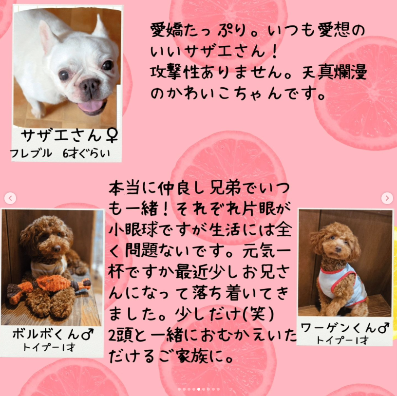 譲渡会前に里親さんが決まったり、体調などにより当日写真のワンちゃんが参加できるとは限りません。